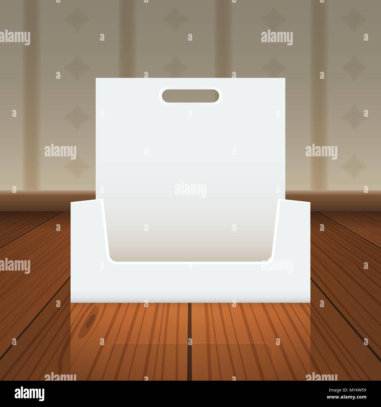 Empty Cardboard Or Visit Card Display Box With Hole To Hang Up Mockup With Front Viewpoint On Wood Floor Vector Realistic Drawing Stock Vector Image Art Alamy